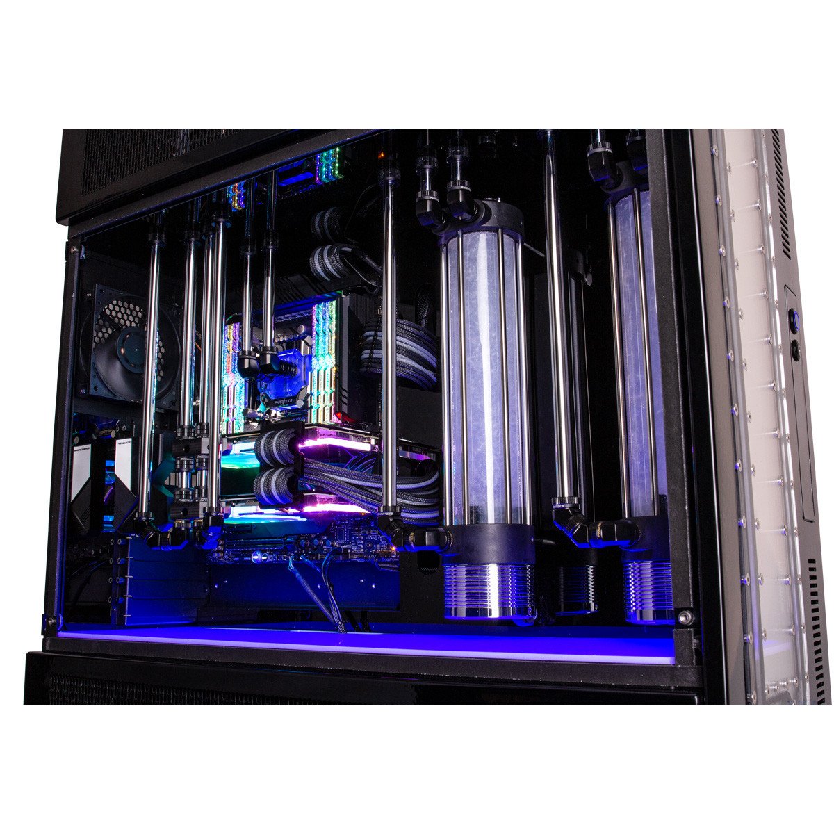 Al alimentar la Supernova XL encontrará uno de los procesadores más exclusivos de Intel, el i9-9990XE. Disponible en cantidades extremadamente limitadas, a través de una subasta cerrada, este procesador esquivo es tan exclusivo que ni siquiera aparece en la base de datos oficial de Intel Ark. El i9-9990XE es un procesador de 14 núcleos, con un reloj base de 4,0 GHz que funciona con un TDP de 255 W, es capaz de alcanzar un reloj de impulso de 5,0 GHz en todos los núcleos, directamente desde la caja. Refrigerado por un circuito de agua personalizado, con dos radiadores dedicados, el i9-9990XE está overclockeado por el mismo 8Pack para un sistema que solo ofrece un rendimiento líder a nivel mundial.