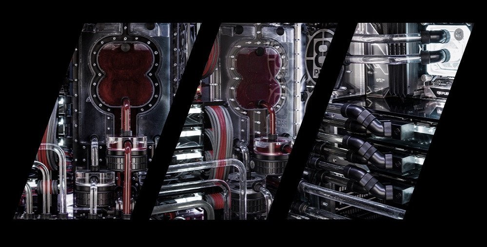 La computadora de sistema dual más potente del mundo, con una pila triple de las tarjetas gráficas TITAN RTX de NVIDIA y tres circuitos de enfriamiento de agua de acrílico personalizados.