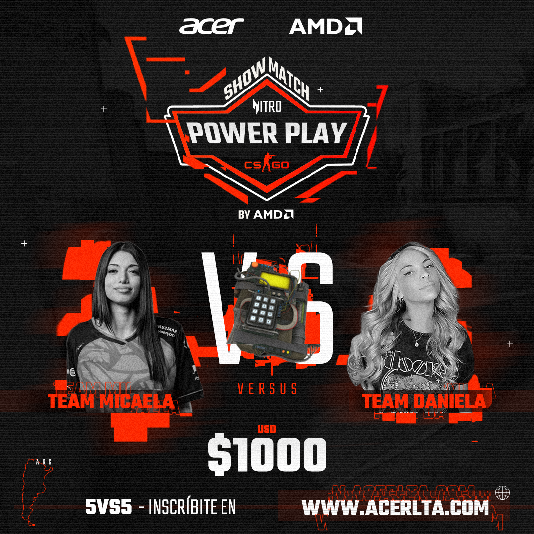 Buenos Aires, 26 de noviembre de 2025.- ¡La escena gamer está por explotar! Acer, junto a AMD, presentan una nueva edición del torneo Nitro Power Play, esta vez con un enfrentamiento de alto voltaje en CS:GO liderado por dos capitanas que vienen a romper el juego: Dani y Mica. Dos estilos, dos comunidades, una sola misión: activar tu power play y dejarlo todo. El torneo será un 5 vs 5 en formato Bo3, y vos podés ser parte de esta experiencia única. Solo tenés que elegir a tu capitana favorita, completar el formulario de inscripción y automáticamente participás del sorteo oficial para sumarte a su squad. Se seleccionarán 4 jugadores por team y se anunciarán en las redes de @AcerLatam y @urgame_by_amd.
