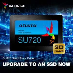 ADATA Technology anuncia hoy el lanzamiento de la unidad de estado sólido (SSD) ADATA Ultimate SU720 SATA 6 Gb/s. Una oferta ideal para aquellos que buscan cambiar a SSD, el SU720 ofrece un gran rendimiento y fiabilidad a un valor increíble. Equipado con memoria 3D NAND y almacenamiento en caché inteligente SLC, el SU720 alcanza velocidades de lectura / escritura de hasta 520/450 MB por segundo.