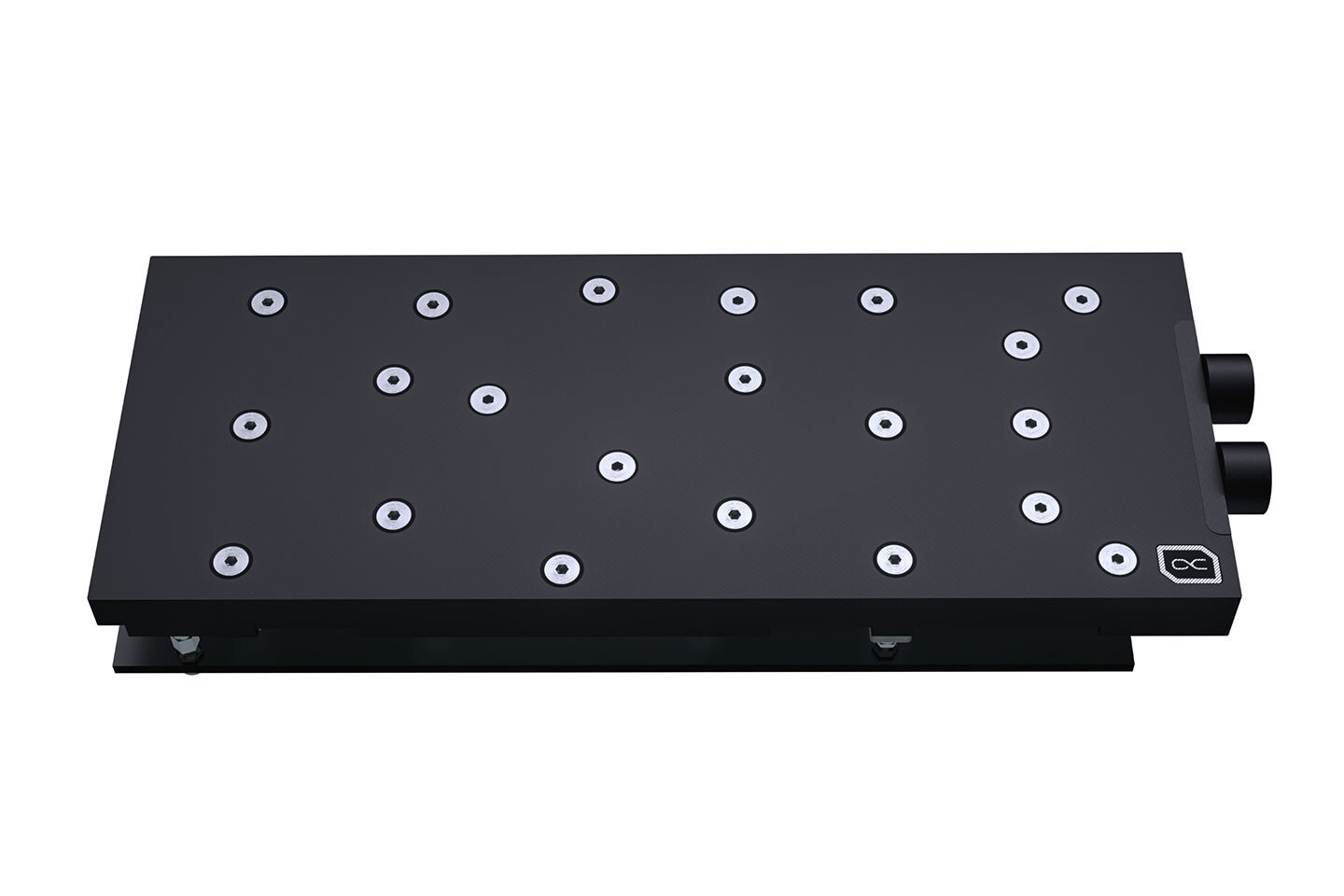 Por supuesto, también está disponible para nuestros clientes finales. Una característica especial de este bloque es el terminal con los puertos G1 / 4 “ubicado en la parte trasera del enfriador. Esta disposición ahorra espacio y hace que sea mucho más fácil colocar y conectar los tubos, especialmente en las carcasas de servidores.