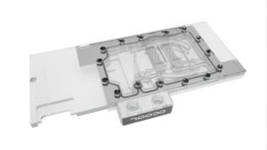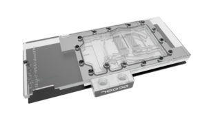 El enfriador de agua de las tarjetas gráficas Alphacool Plexi Light se caracteriza por varias características de diseño. El plexiglás transparente le permite ver el flujo de agua. El bloque de enfriamiento está hecho de cobre sólido, y luego está completamente niquelado. El generoso flujo de agua cubre todos los componentes importantes de la tarjeta gráfica. No solo la GPU, sino también los convertidores de voltaje, el V-Ram y otros componentes que generan calor se enfrían activamente con agua.