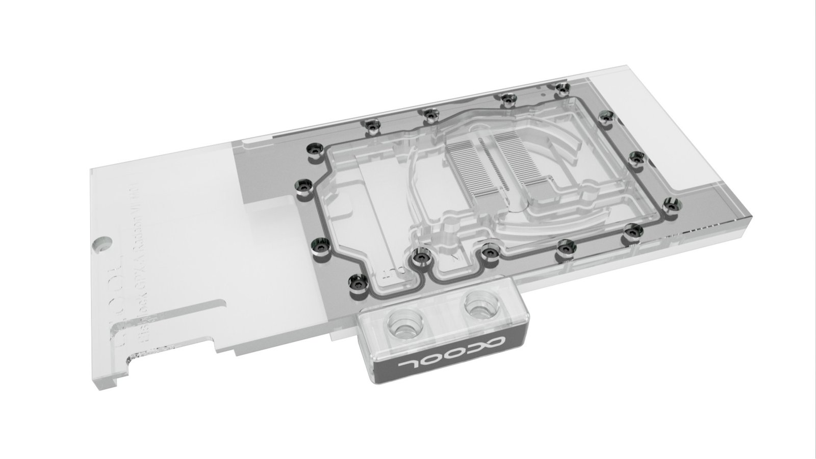 El enfriador de agua de las tarjetas gráficas Alphacool Plexi Light se caracteriza por varias características de diseño. El plexiglás transparente le permite ver el flujo de agua. El bloque de enfriamiento está hecho de cobre sólido, y luego está completamente niquelado. El generoso flujo de agua cubre todos los componentes importantes de la tarjeta gráfica. No solo la GPU, sino también los convertidores de voltaje, el V-Ram y otros componentes que generan calor se enfrían activamente con agua.