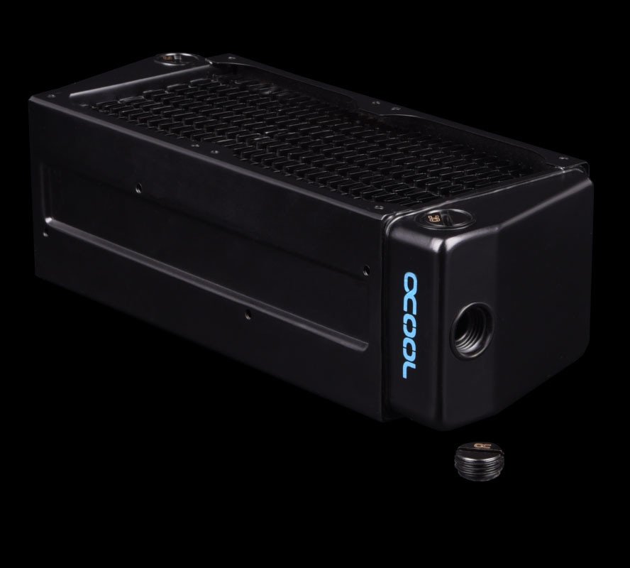 Alphacool ha desarrollado tapones de parada patentados especiales que están alineados con el radiador para evitar que ensucien la carcasa. Las soluciones anteriores siempre superaban la longitud o el ancho del radiador porque no estaban avellanadas.