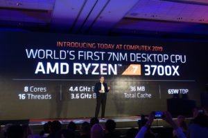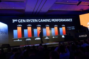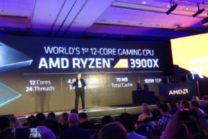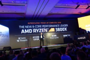 La Dra. Lisa Su, CEO de AMD en su discurso de apertura de 2019 Computex, anunció la familia de procesadores de escritorio Ryzen de tercera generación, que aprovecha la microarquitectura Zen 2 de la compañía, y se basa en el proceso de fabricación de silicio de 7 nm en TSMC. Diseñados para el zócalo de CPU AM4, con compatibilidad con versiones anteriores para las placas base de chipsets AMD serie 300 y serie 400 anteriores, estos procesadores son módulos de chip múltiple de hasta dos chiplets de CPU “Zen 2” de 8 núcleos, y un I / O el controlador que contiene el controlador de memoria DDR4 de doble canal y el complejo raíz PCI-Express gen 4.0, junto con cierta conectividad SoC. AMD reclama un aumento de IPC del 15 por ciento con respecto al Zen 1, y velocidades de reloj más altas que aprovechan 7 nm, lo que se traduce en un rendimiento significativamente mayor en la generación actual. AMD reforzó la FPU del núcleo (unidad de punto flotante),