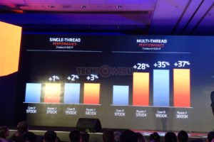AMD presentó tres SKU de gama alta por ahora, el $ 329 Ryzen 7 3700X, el $ 399 Ryzen 7 3800X y el $ 499 Ryzen 9 3900X. El 3700X y el 3800X son piezas de 8 núcleos / 16 hilos con un chiplet de CPU único. El 3700X tiene una velocidad de reloj de 3.60 GHz con una frecuencia de impulso máxima de 4.40 GHz, solo 65 vatios TDP y será mejor que el Core i7-9700K de Intel, tanto en juegos como en productividad. Los 3800X superan a los de 3,90 GHz nominales, 4,50 GHz de impulso, 105W TDP y superaron al Core i9-9900K en juegos y productividad. AMD dio un paso más en el lanzamiento de la nueva marca Ryzen 9 con el 3900X, que es un procesador de 12 núcleos / 24 hilos con velocidad de reloj de 3.80 GHz, 4.60 boost, 72 MB de caché total, 105W TDP y un rendimiento que no solo supera al i9-9900K, pero también al procesador HEDT i9-9920X de 12 núcleos / 24 hilos a pesar de tener dos canales de memoria menos. AMD se centró en el rendimiento del juego con Zen 2, con una FPU más amplia, una mejor predicción de sucursales y varias mejoras de microarquitectura que contribuyen a un rendimiento por núcleo superior al de Intel. Los procesadores saldrán a la venta el 7/7/2019.
