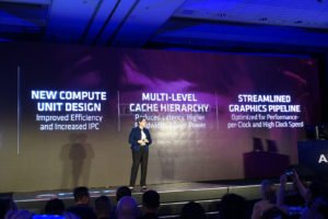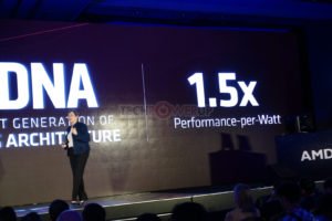 Además, la arquitectura está diseñada para aumentar el rendimiento por vatio en un 50 por ciento sobre Vega. La primera parte en aprovechar Navi es la Radeon RX 5700. AMD presentó una demostración de lado a lado de la RX 5700 contra la GeForce RTX 2070 en Strange Brigade, donde la tarjeta de $ 500 de NVIDIA fue derrotada. “Strange Brigade” es un juego en el que AMD funciona generalmente bien, ya que está muy optimizado para el cálculo asíncrono. Navi también cumple con las casillas de verificación de gran tecnología, PCI-Express gen 4.0 y memoria GDDR6. AMD ha planeado una disponibilidad en julio para el RX 5700 y no reveló los precios.