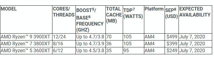 Se espera que los procesadores AMD Ryzen 5 3600XT, AMD Ryzen 7 3800XT y AMD Ryzen 9 3900XT estén disponibles en los principales minoristas y minoristas del mundo a partir del 7 de julio de 2020. Se espera que las placas base AMD A520 estén disponibles en los principales minoristas y minoristas a partir de agosto de 2020 desde socios de la junta, incluidos ASRock, ASUS, Biostar, Colorful, GIGABYTE y MSI.