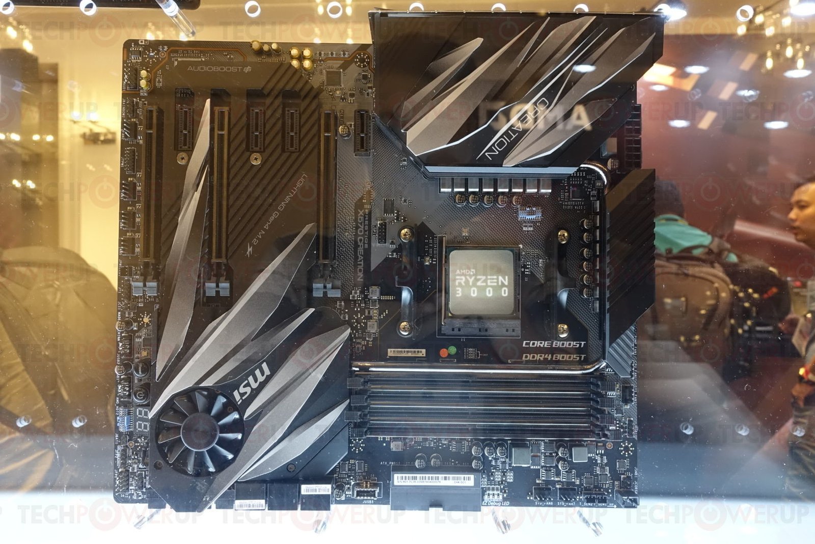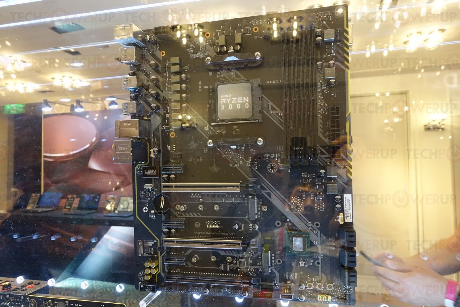 AMD en su escaparate privado de 2019 Computex para los medios de comunicación después de la presentación principal de su CEO, presentó varias placas madre premium basadas en el nuevo chipset AMD X570. El X570 es un esfuerzo de diseño interno de AMD y, a diferencia del X470, no proviene de ASMedia. El conjunto de chips es compatible con PCI-Express gen 4.0 de extremo a extremo, lo que significa que no solo es el chipset-bus gen 4.0, sino también los canales PCIe descendentes que se distribuyen. El chipset se conecta al socket AM4 a través de un enlace PCI-Express 4.0 x4 (64 Gbps).