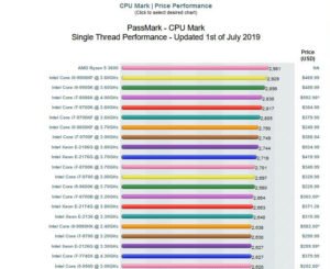 Como más evidencia de que AMD finalmente logró o superó la paridad IPC con Intel, un procesador Ryzen 5 3600 de rango medio supera al actual procesador estrella de escritorio de Intel, el Core i9-9900KF, en el banco de pruebas PassMark – CPU Mark single-thread. El cuadro de rendimiento oficial de PassMark muestra al Ryzen 5 3600 al frente del paquete, con 2,981 puntos, una puntuación que es 1,77 por ciento más alta que la del Core i9-9900KF en el mismo cuadro. También supera al Core i9-9900K en un 2,86 por ciento. Curiosamente, el gráfico no menciona si el Ryzen 5 3600 se está ejecutando a su frecuencia de stock de 3,60 GHz con un impulso de 4,20 GHz, o si está overclockeado. El i9-9900KF aumenta a 5,00 GHz. Para un punto de referencia de un solo hilo, generalmente se asume que el multiplicador de impulso máximo está activado en ambos chips.