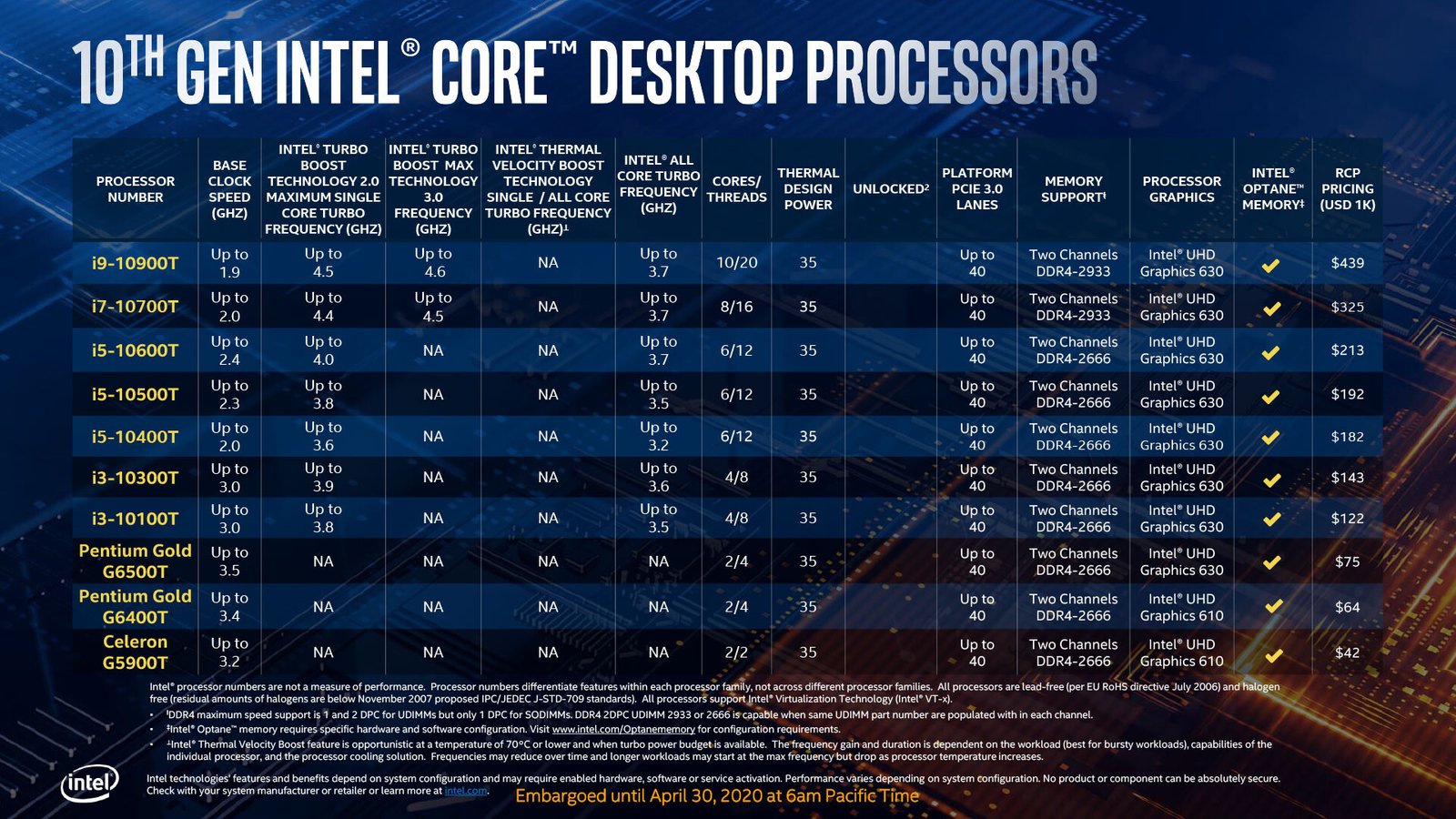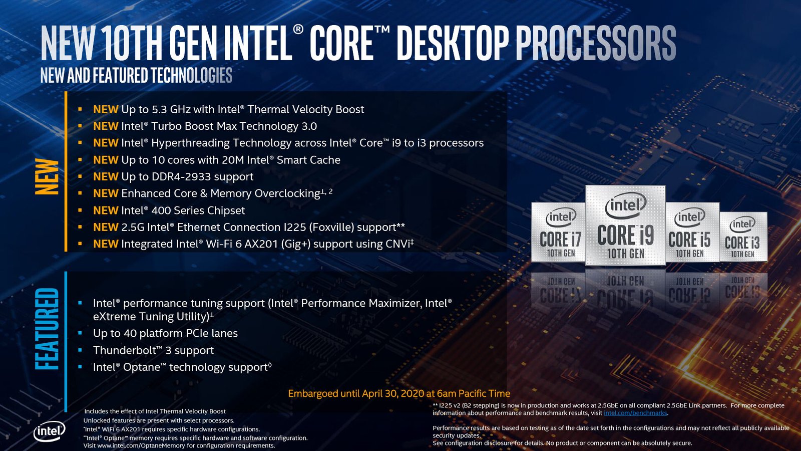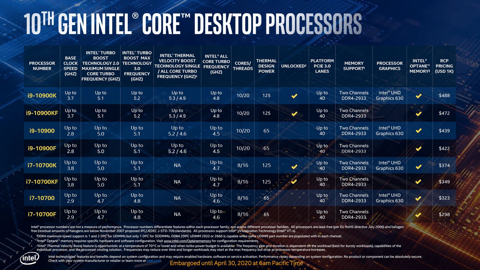 Aunque se anunció hoy, los procesadores de escritorio Core de décima generación y las placas base LGA1200 compatibles deberían llegar a los mercados de todo el mundo a partir de mayo a junio: las SKU K llegarán primero al mercado.