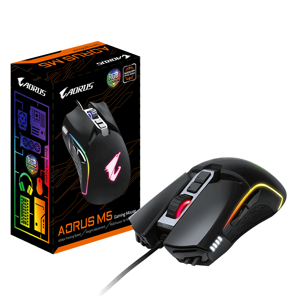 Gigabyte anunció el lanzamiento en Europa de su ratón gaming tope de gama, el Aorus M5, con unas dimensiones de 128 x 72 x 43 mm de altura y un peso de 118 gramos con un agarre de tipo garra donde en su interior nos encontramos con un sensor óptico PixArt 3389, capaz de alcanzar una resolución de hasta 16.000 de DPI, con una velocidad de muestreo de hasta 450 IPS y capaz de reconocer movimientos con una aceleración de hasta 50G.