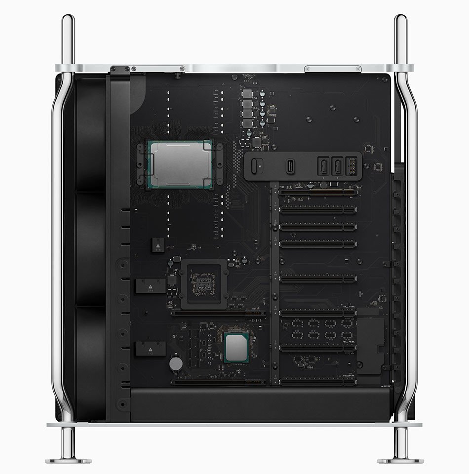 Diseñado para clientes que exigen lo último en rendimiento de CPU, para flujos de trabajo como renderizado de producción, tocando cientos de instrumentos virtuales o simulando una aplicación en una docena de dispositivos iOS a la vez, Mac Pro cuenta con potentes procesadores Xeon de hasta 28 cores, con 64 líneas PCI Express para un rendimiento tremendo y un ancho de banda masivo. También proporciona más de 300 vatios de potencia junto con una arquitectura térmica de vanguardia para permitir que el procesador funcione sin restricciones todo el tiempo.