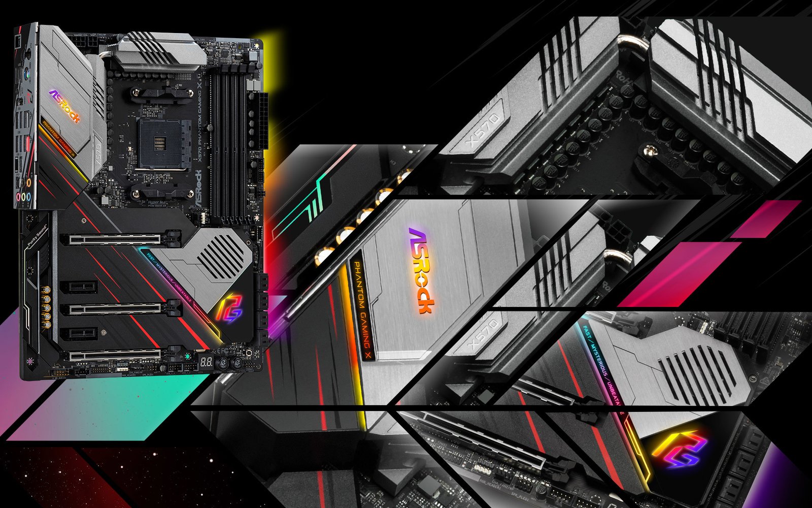 El nuevo diseño para las placas base X570 de ASRock es un gran paso adelante. ASRock ha combinado la estética y la funcionalidad para crear una tabla que no solo tiene un aspecto fascinante, con sus líneas angulosas en negrita, sino que se comporta tan bien como se ve. El impresionante disipador térmico de aluminio de cobertura total enfría y protege los SSD PCIe 4.0 NVMe M.2, así como el chipset. El sistema de LED de color, cuidadosamente diseñado, es llamativo pero también elegante. Si necesita aún más efectos RGB mejorados, puede personalizar su PC con la iluminación LED RGB a todo color Polychrome SYNC, que proporciona encabezados RGB direccionables de 3 pines y encabezados LED RGB de 4 pines tradicionales que permiten a los usuarios conectar tiras RGB directamente a La placa base y sincronizar su sistema de iluminación utilizando la aplicación proporcionada.