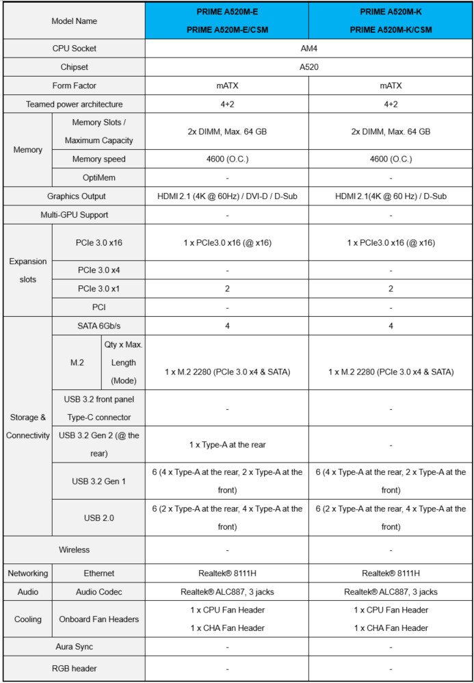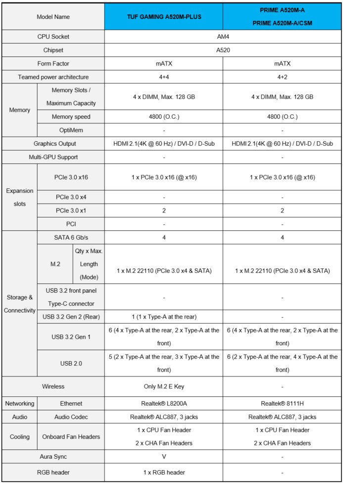 ASUS anunció hoy las nuevas placas base con chipset A520 para sus series TUF Gaming, Prime y Pro. El chipset AMD A520 es el sucesor del chipset A320 y cuenta con PCIe 3.0. Diseñadas para satisfacer una amplia gama de necesidades, estas placas base cuentan con una BIOS flash ROM de 32 MB y son compatibles con CPU y APU de arquitectura AMD Ryzen Zen 3 futuras.