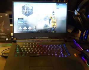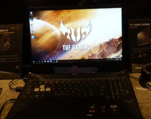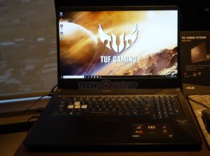 Continuando, finalmente llegamos al sistema de juego TUF del cual ASUS tenía la FX705DU y la FX505DU en pantalla. Ambas unidades cuentan con una CPU AMD Ryzen 7 3750H y hasta una GPU NVIDIA GeForce RTX 1660 Ti, lo que significa que es bastante similar al Zephyrus G GA502. Sin embargo, luce el apodo “TUF” lo que significa que pasó la prueba MIL-STD-810G. Cuando se trata de la pantalla, es un nivel NanoEdge IPS de 144 Hz que ofrece el 100% de la gama de colores sRGB. Cuando se trata del teclado, es RGB retroiluminado, como habrás adivinado.