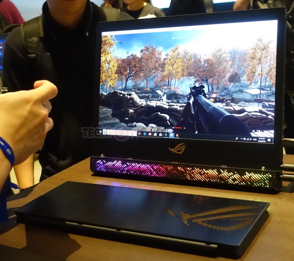 Mirando más de cerca la alineación de Republic of Gamers y nuestra atención se dirige inmediatamente a la Mothership ROG, que debido a su diseño es la computadora portátil más única en exhibición aquí. Destaca por su teclado desmontable con iluminación RGB, ocho tubos de calor, enfriamiento de metal líquido, pantalla 4K G-SYNC, overclocking de CPU Intel i9-8950H, NVIDIA GeForce RTX 2080 y NVMe SSD, que se destaca entre la multitud. Se acabó la concha tradicional si así lo eliges sin sacrificar el rendimiento. Definitivamente resulta ser un producto llamativo.