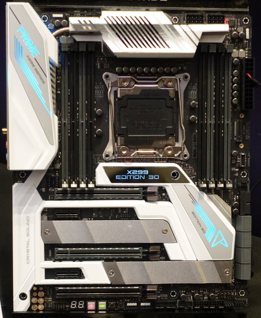 ASUS conmemora sus 30 años en la industria de las placas base con la placa base Prime X299 Edition 30 y la plataforma de escritorio de referencia Prime Utopia. Prime X299 Edition 30 es una placa base LGA2066 premium con soporte para procesadores Core i9-9000X de serie. Se basa en un diseño de PCB de aspecto familiar, acoplado a un nuevo disipador térmico compuesto en su mayoría de color blanco sobre la E / S posterior, las ranuras M.2 y el disipador térmico del chipset. El disipador térmico VRM está activo y tiene un rotor oculto de 40 mm que ventila el metal. Tres de cada una de las ranuras PCI-Express 3.0 x16 y M.2 NVMe, un escudo de E / S trasero integrado, conectividad premium que incluye WLAN 802.11ac y una solución de audio de alta gama para la placa, se encargan del resto.