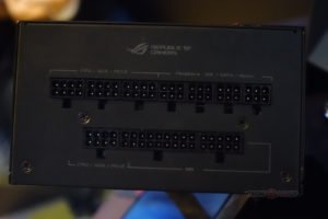 ASUS abrió de golpe la puerta para entrar en el mercado de PSU para PC de juegos con el último Computex de ROG Thor de gama alta. Este año, la compañía se está tragando la carne del mercado de los juegos de rendimiento con la nueva familia de fuentes de alimentación ROG Strix, haciendo su debut con un modelo de 650 vatios. Esta fuente de alimentación ofrece un ruido de ralentí bajo debido a los disipadores de calor excesivamente grandes, un ventilador Axus-Tech de innovación de ASUS que está diseñado para dirigir todo su flujo de aire hacia abajo, sin sangrado lateral; cableado modular completo, y algunas opciones de personalización cosmética, incluyendo un par de pegatinas magnéticas. El cableado incluye dos conectores EPS de 4 + 4 pines, cuatro PCIe de 6 + 2 pines, nueve de alimentación SATA y un trío de conectores Molex. ASUS planea expandir esta serie en ambas direcciones.