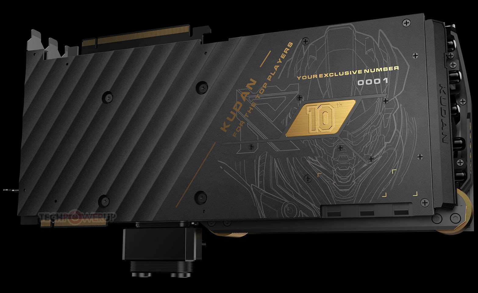 El nuevo sistema de refrigeración híbrido KUDAN para el RTX 2080 Ti incluye todos los componentes de refrigeración nuevos, incluido un radiador grande, placa posterior a presión personalizada con un número para indicar cuál de las 1000 unidades limitadas es la tarjeta.