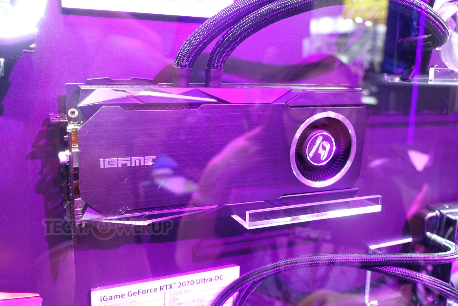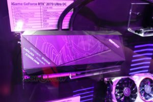 También se presentó el iGame RTX 2060 Neptune OC y RTX 2070 Ultra OC. A diferencia de su hermano mayor, que se detalla más arriba, estas tarjetas dependen completamente de una solución de refrigeración líquida de circuito cerrado para enfriar todos sus componentes (GPU, memoria, VRM). Una placa base extrae el calor de todos los componentes calientes y lo lleva a un bloque de bombeo, que empuja el calor a un radiador de 120 mm x 120 mm con un solo ventilador incluido. El “OC de un solo clic” de la tarjeta se establece en 1755 MHz GPU Boost (frente a 1680 MHz de referencia) para el RTX 2060, y 1710 MHz (frente a 1610 MHz de referencia) para el RTX 2070.
