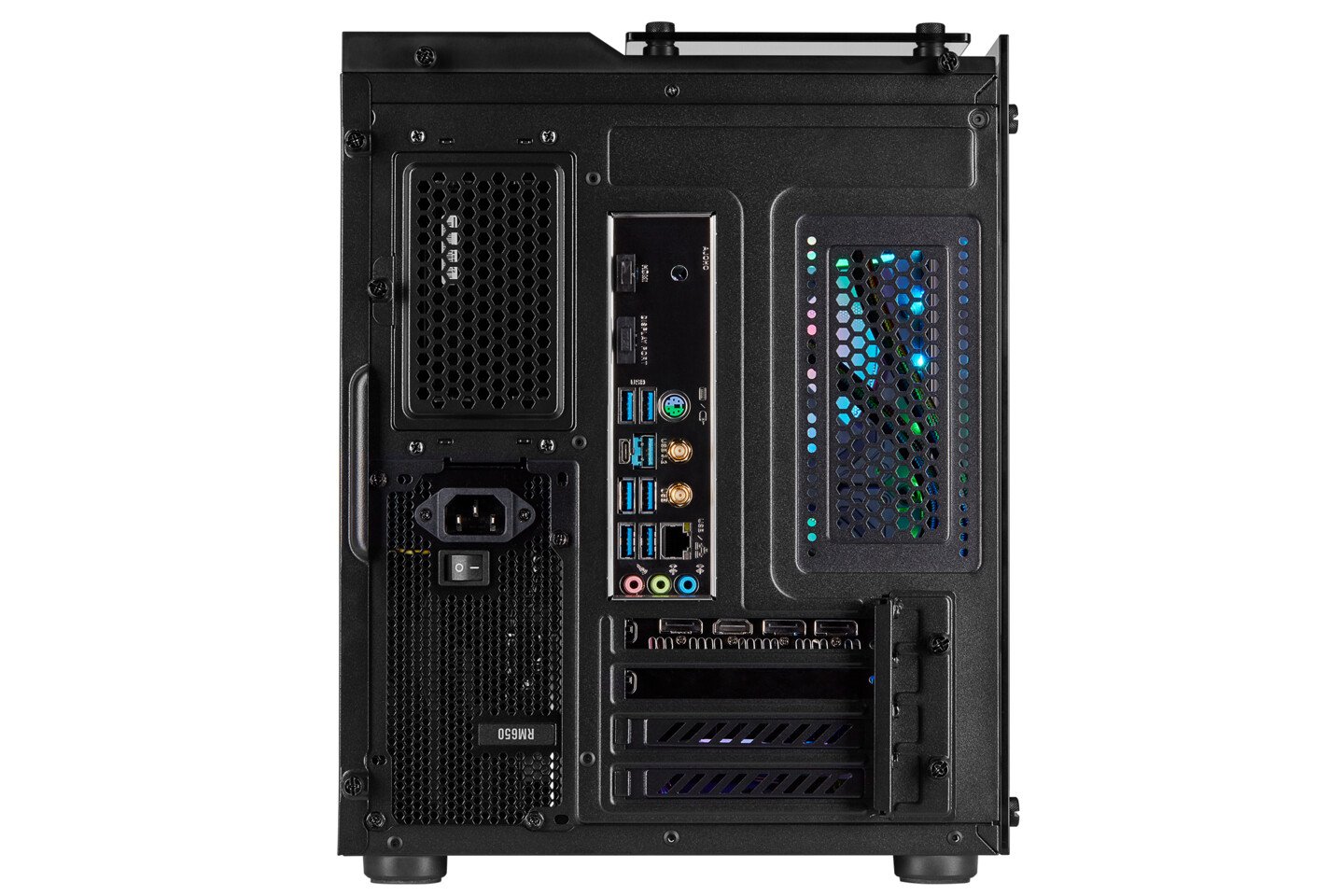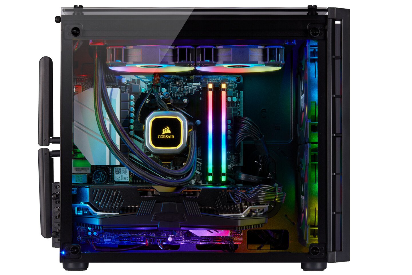 La serie VENGEANCE 6100 cuenta con una amplia iluminación RGB en todo el sistema: un total de 140 LED RGB direccionables individualmente permiten fascinantes espectáculos de luz visibles a través de los tres paneles de vidrio templado cristalino de una caja CORSAIR 280X compacta. El potente software CORSAIR iCUE permite la sincronización y la personalización de su iluminación en todo el sistema, la monitorización profunda del sistema y el control preciso sobre las velocidades del ventilador y la bomba. Los jugadores de PC que buscan un sistema AMD potente y elegante no necesitan buscar más: es hora de mejorar su juego con una PC CORSAIR VENGEANCE 6100 Series.
