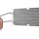 No solo el marco del radiador es blanco, sino también las aletas del radiador. La funda de tejido de fibra que rodea los tubos de refrigerante también es blanca. El blanco también domina los bastidores del ventilador y los impulsores. Hay algunos bits negros de contraste interesantes, como el cuerpo principal del bloque de la bomba, su corona y los soportes de amortiguación de vibraciones, por no mencionar los tornillos incluidos.