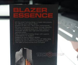 The Blazer Essence es un caso interesante desde una perspectiva de diseño; Cougar ha estado lanzando jonrones con la audacia de sus diseños. La ventana lateral de vidrio templado de 4 mm y los detalles metálicos en general exudan el diseño, y el esquema de color negro y naranja de la compañía se ve como en casa en esta construcción. Todavía permite el soporte de GPU de hasta 310 mm y un solo radiador de 240 mm.