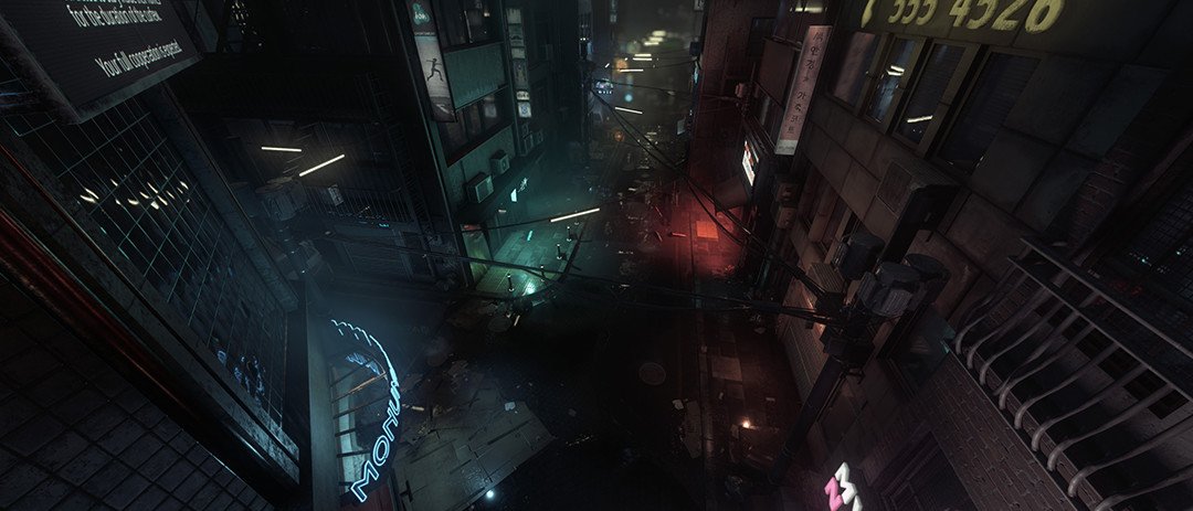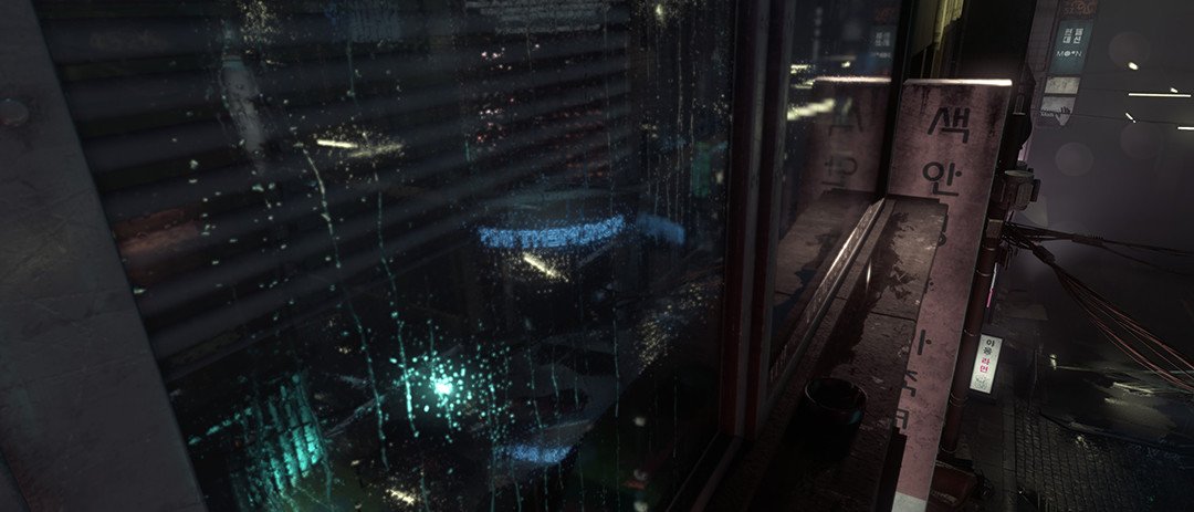 Neon Noir sigue el viaje de un avión policial que investiga la escena del crimen. A medida que el dron desciende a las calles de una ciudad futurista, iluminada por luces de neón, vemos su reflejo que se muestra con precisión en las ventanas por las que pasa, o dispersas en los fragmentos de un espejo roto mientras emite una rutina de iluminación roja y azul que lo hará. rebote en las diferentes superficies utilizando la función avanzada de iluminación total de CRYENGINE. Demostrando aún más cómo el trazado de rayos puede ofrecer un entorno realista, las luces de neón se reflejan en los charcos que se encuentran debajo de ellos, las luces de la calle parpadean en las superficies húmedas y las ventanas reflejan la escena opuesta a ellas con precisión.