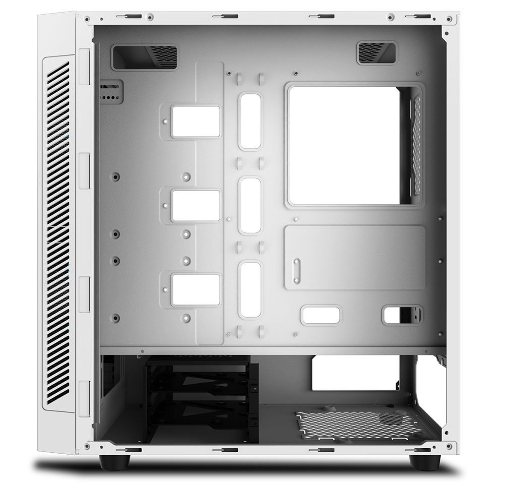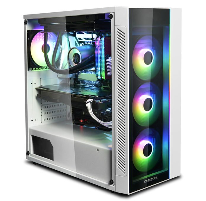DeepCool presentó el MATREXX 55 ADD-RGB en un borde plateado. El gabiente que ahora cuenta con un acabado plateado mate en las partes metálicas de sus paneles frontal y de sitio, combinados con interiores completamente blancos, y vidrio templado teñido en el lado izquierdo y en la mayoría del panel frontal. Un elemento clave del diseño es el difusor RGB direccionable que corre a la altura de la carcasa a lo largo del panel frontal. Todos los elementos LED RGB en el estuche, incluida esta tira de luz, ahora cuentan con encabezados RGB (3 pines) direccionables. El estuche ofrece cuatro bandejas / soportes de 2,5 pulgadas y dos de 3,5 pulgadas, tres soportes de ventilador de panel frontal de 140 mm, dos soportes superiores de 140 mm y espacio libre para tarjetas gráficas de hasta 37 cm de longitud y refrigeradores de CPU de 16,8 cm de altura.