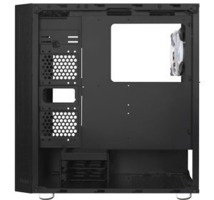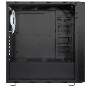 El panel frontal IO se colocó en el área frontal para un fácil acceso y permite que DIYPC utilice completamente un elegante panel de vidrio templado en la parte frontal para exhibir los ventiladores LED RGB preinstalados.