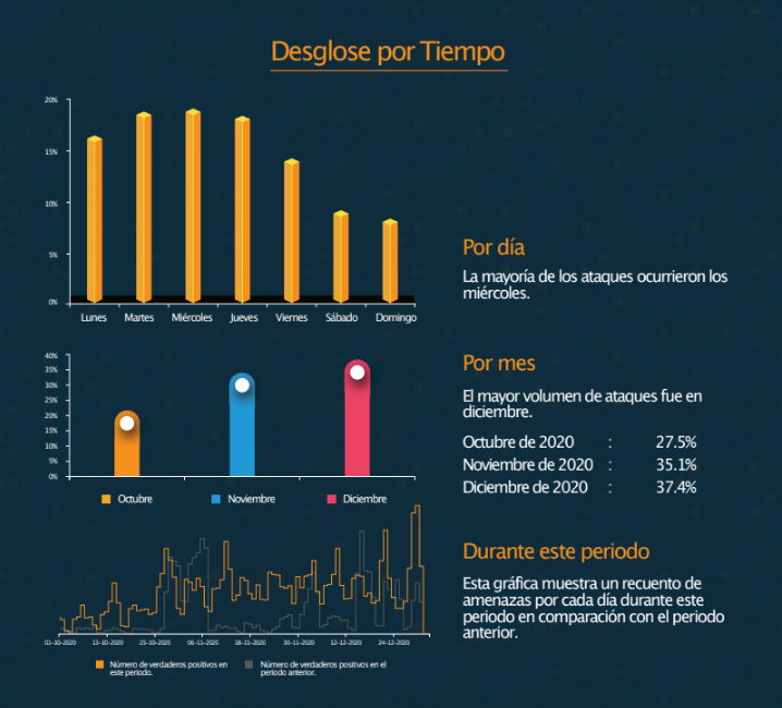 - Los tipos más comunes de archivos adjuntos maliciosos fueron: documentos (31%), archivos de almacenamiento (28%), hojas de cálculo (19%) y archivos ejecutables (17%).
