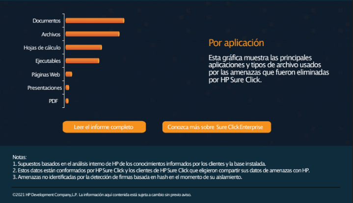 Las amenazas destacadas que fueron aisladas por HP Sure Click incluyeron: