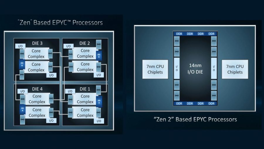 Ahora no pretendamos por un segundo que la buena doctora no tenía la intención de probar un chip Ryzen de 16 núcleos cuando sostuvo ese chip Ryzen de tercera generación sin su ropa puesta. El diseño Zen 2 permite un montón de modularidad cuando se trata de la pila de productos de AMD. Todo, desde los procesadores EPYC del centro de datos hasta los chips Ryzen de baja potencia, es simplemente una cuestión de sumar o restar chiplets para que encajen.