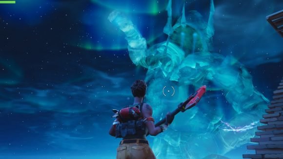 La cuenta regresiva que todos hemos estado viendo en las pantallas de TV del juego de Fortnite llegó a cero hoy, según lo programado, y el Rey de Hielo se soltó de su esfera sobre el Pico Polar. Flotando en lo alto, convocó una gigantesca copia fantasmal de sí mismo, causando una nueva grieta en el cielo. A continuación, conjuró una llama azul, que envió hacia delante con una ráfaga de viento helado y nubes, que cruzó el mapa y cubrió la isla con nieve.
