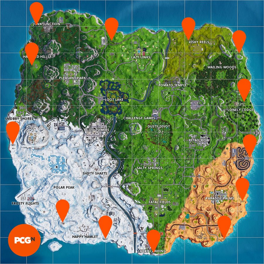 Hay 14 sitios increíbles de fuegos artificiales en Fortnite y hemos fijado cada ubicación en nuestro mapa personalizado a continuación ( haga clic para ampliar ). Eche un vistazo si está luchando para marcar este desafío.