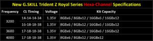 El fabricante líder mundial de periféricos de juego y memoria de rendimiento extremo, anuncia nuevas especificaciones de memoria Trident Z Royal DDR4 RGB ultrarrápidas y de capacidad ultraalta diseñadas para usar con el último desbloqueado Procesador Intel Xeon W-3175X de 28 núcleos. Operando en hexa-channel con configuraciones de kit de 6 ó 12 módulos, estos nuevos kits de memoria Trident Z Royal de 6 canales pueden alcanzar velocidades de memoria increíbles de hasta DDR4-4000 CL17-18-18-38 a 1.35 V, que presentan características extremas Rendimiento Samsung B-die memoria ICs. Con una velocidad de memoria rápida y una capacidad masiva, estos kits de memoria de canal hexagonal son perfectos para estaciones de trabajo con cargas de trabajo pesadas cuando se combinan con el procesador Xeon de 28 núcleos.