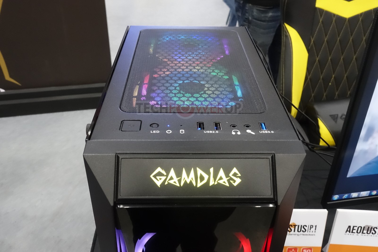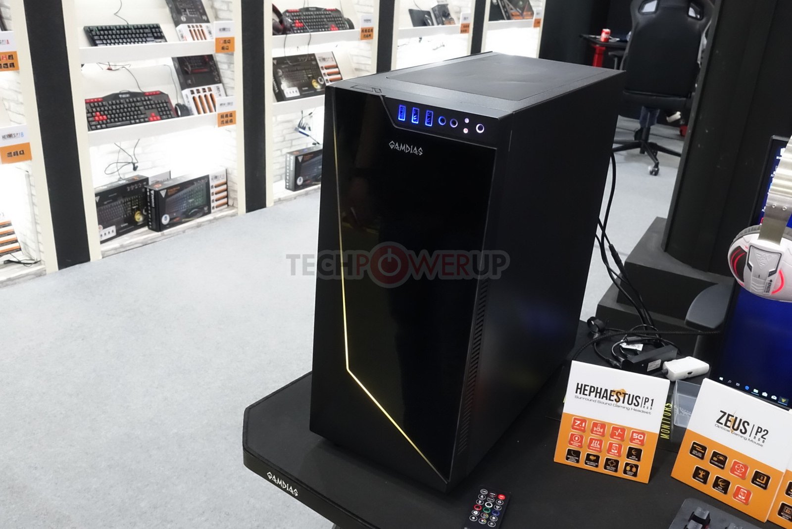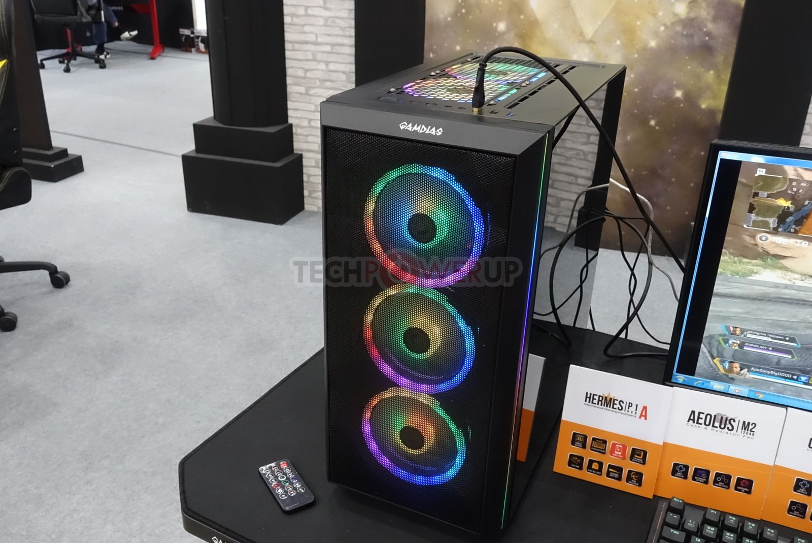 Gamdias también trajo un montón de gabientes a Computex este año, incluyendo algunos diseños nuevos, como el ATHENA M2 y el ARGUS M1. Comenzando con el ARGUS M1, presenta un diseño externo más elegante y tenue que, aunque está equipado con iluminación RGB, está decorado con buen gusto con un acento frontal semi-L. También tiene puertos USB iluminados, lo que era una buena característica de novedad. Cuando se trata de enfriar, el panel frontal tiene orificios de ventilación laterales, pero debe tenerse en cuenta que no se extienden completamente, lo que limita la posible entrada de aire. Dicho esto, un radiador de 360 mm encajará fácilmente en el frente.