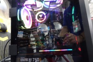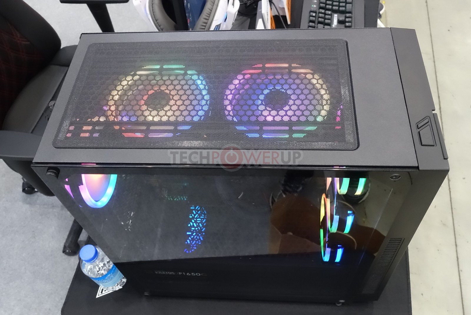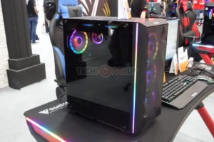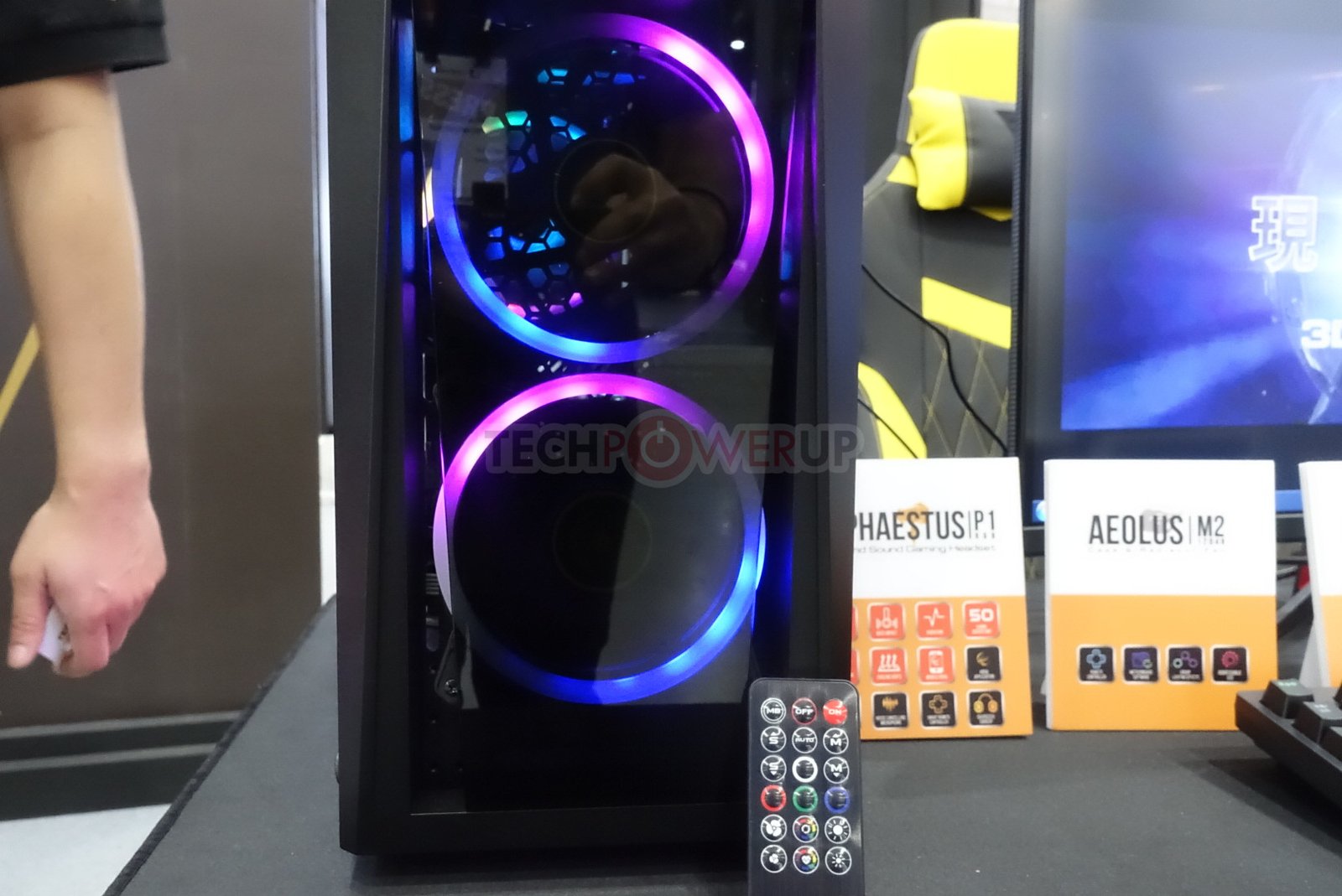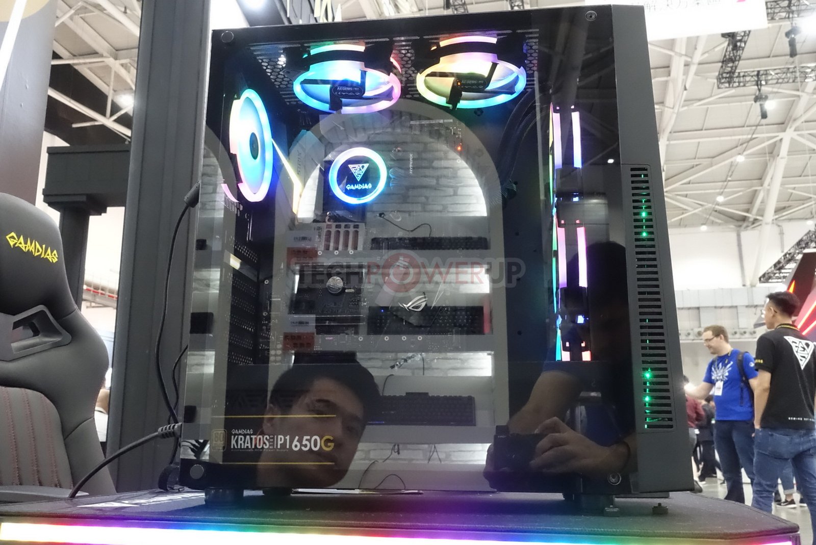 Gamdias también trajo un montón de gabientes a Computex este año, incluyendo algunos diseños nuevos, como el ATHENA M2 y el ARGUS M1. Comenzando con el ARGUS M1, presenta un diseño externo más elegante y tenue que, aunque está equipado con iluminación RGB, está decorado con buen gusto con un acento frontal semi-L. También tiene puertos USB iluminados, lo que era una buena característica de novedad. Cuando se trata de enfriar, el panel frontal tiene orificios de ventilación laterales, pero debe tenerse en cuenta que no se extienden completamente, lo que limita la posible entrada de aire. Dicho esto, un radiador de 360 mm encajará fácilmente en el frente.