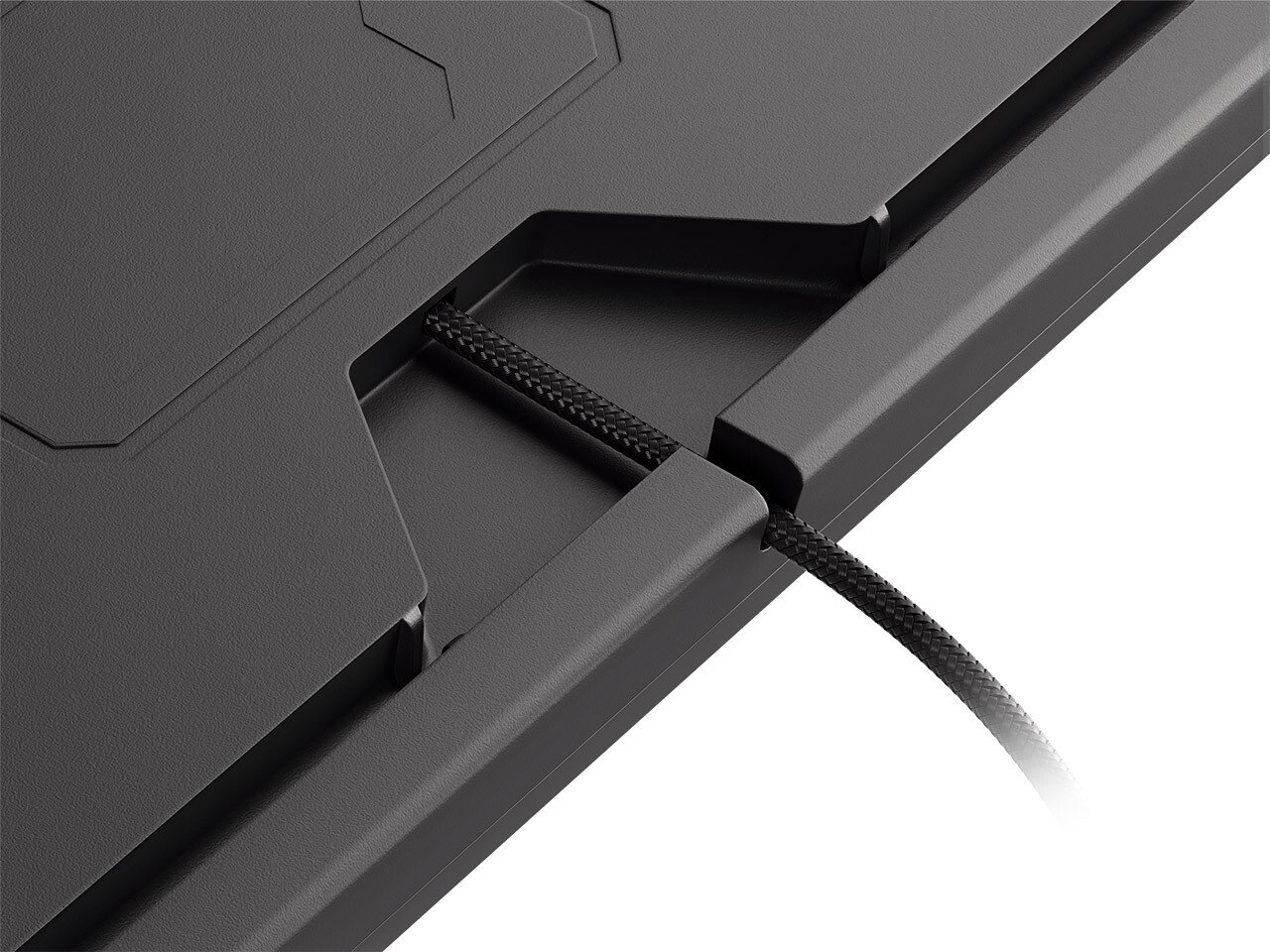 La configuración del teclado Genesis Thor 300 RGB se puede ajustar con una aplicación. Permite no solo la configuración de la iluminación, sino también la creación de macros en un editor, así como guardarlos en perfiles definidos. Cuando se trata de soluciones prácticas, el dispositivo está equipado con un organizador de cable y teclas de función multimedia.