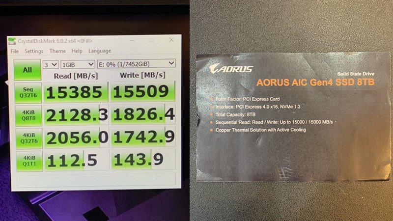En su stand de Computex, Gigabyte mostró algunos resultados bastante impresionantes de su tarjeta SSD basada en PCIe 4.0. El llamado “Auros AIC Gen4 SSD” es un monstruo de rendimiento. Es capaz de empacar hasta cuatro SSD M.2 en función de la cuarta generación del protocolo PCIe, que puede llegar hasta 2 TB cada uno, 8 TB en total. Y si los pone en la configuración RAID 0, obtendrá unos números de rendimiento sorprendentes. Gigabyte demostró que lograron velocidades superiores a 15 GB / s en lecturas y escrituras secuenciales, lo que proporcionó un ancho de banda mucho mayor que el que se vio anteriormente. El SSD viene con una cubierta de aluminio que tiene almohadillas térmicas en el interior para disipar las unidades de calor que producen. Además, hay un ventilador soplador conectado a la tarjeta para mantener constante el flujo de aire fresco.