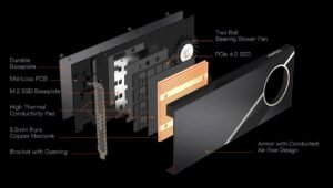 El componente de la tarjeta vertical del AORUS Gen4 AIC SSD tiene una lógica básica que controla un ventilador lateral en función de la temperatura de la unidad y proporciona LED de actividad básica del disco. En el interior, un disipador de calor monobloque de cobre extrae el calor de las cuatro unidades. Cada una de las cuatro unidades internas M.2 NVMe cuenta con memoria flash 3D TLC NAND de 96 capas y controladores Phison E16. Con NVMe RAID seccionado, la tarjeta ofrece un rendimiento máximo de hasta 15.000 MB / s de lecturas secuenciales y hasta 9.500 MB / s de escrituras secuenciales. El rendimiento de acceso aleatorio tiene una clasificación de hasta 425.000 lecturas aleatorias IPS 4K y hasta 440.000 escrituras aleatorias IOPS 4K. GIGABYTE respalda la unidad con una garantía de 5 años. La empresa no reveló los precios.
