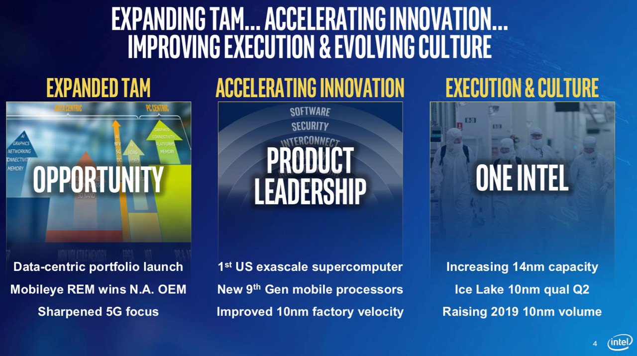 El CEO de Intel, Bob Swan, también comentó que la compañía ha duplicado sus expectativas de rendimiento de 10 nm. “En el frente de la tecnología de proceso de [10 nm], nuestros equipos se ejecutaron bien en la Q1 y nuestra velocidad está aumentando”, dijo, y agregó que “Seguimos en el buen camino para tener los sistemas de volumen de clientes en los estantes para la temporada de ventas de vacaciones. Durante cuatro meses, la organización logró una mejora de casi el doble en la tasa a la que los productos de 10 nm se mueven a través de nuestras fábricas “. Intel está dando prioridad a la empresa sobre la de escritorio, ya que “Ice Lake-U” será seguido por el lanzamiento de “Ice Lake-SP” Xeon en 2020. No se mencionaron implementaciones de escritorio como “Ice Lake-S”. Se rumorea que Intel está preparando una microarquitectura provisional para la plataforma de escritorio para competir con los procesadores AMD “Matisse” Zen 2 AM4, con nombre en código “