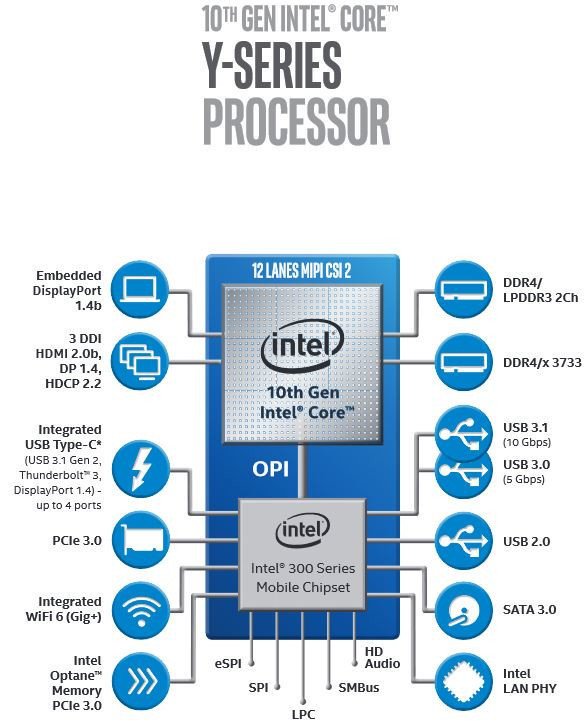 Estas son algunas de las primeras imágenes del módulo de chip múltiple “Ice Lake-Y” Core de 10ª generación, diseñado para plataformas de ultra bajo consumo, como computadoras portátiles y convertibles 2 en 1. Estos chips tienen un objetivo TDP tan bajo como 8W a 15W, están integrados en un MCM (módulo de chip múltiple) BGA (matriz de rejilla de bola) para minimizar la altura Z y conservar el estado real de la placa base de la placa base, respectivamente. Por supuesto, las matrices más grandes de las dos son el SoC “Ice Lake” de 10 nm con 4 núcleos de CPU “Sunny Cove” y una iGPU Gen11 GT2. El troquel más pequeño es el PCH (concentrador del controlador de plataforma) o el chipset. La RVP (plataforma de validación de referencia) es una placa base que le permite probar todas las opciones de conectividad posibles de la plataforma, al cambiar manualmente entre carriles PCIe, enlaces SATA, GPIO, LVDS y TMDS a través de puentes. Intel suele entregar estos a los fabricantes de equipos originales, integradores de sistemas, y desarrolladores de software de sistemas. También vimos la oblea de 4 núcleos “Ice Lake-Y”.