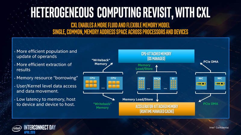 CXL, abreviatura de Compute Express Link, es una nueva y ambiciosa tecnología de interconexión para dispositivos de alto ancho de banda extraíbles, como los aceleradores de cómputo basados en GPU, en un entorno de centro de datos. Está diseñado para superar muchas de las limitaciones técnicas de PCI-Express, la menor de las cuales es el ancho de banda. Intel percibió que su próxima familia de aceleradores de cómputo escalables bajo la banda Xe necesita una interconexión especializada, que Intel quiere impulsar como el próximo estándar de la industria. El desarrollo de CXL también se desencadena por los mayores aceleradores de cómputo NVIDIA y AMD que ya tienen interconexiones similares propias, NVLink e InfinityFabric, respectivamente. En un evento dedicado denominado “Día de la interconexión 2019”, Intel presentó una presentación técnica en la que se explicaban las tuercas y tornillos del CXL.