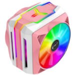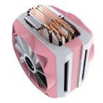JONSBO lanzó un nuevo modelo rosa chicle de su enfriador de CPU de aire tipo torre CR-1100. El diseño ve rosa que compone los marcos de los ventiladores, y la cubierta del disipador térmico, con bandas blancas contrastantes que forman partes de la cubierta del disipador térmico. Tanto los ventiladores de empuje como los de tracción cuentan con impulsores translúcidos escarchados con adornos LED ARGB. Debajo de todo ese plástico hay un disipador térmico tipo torre que utiliza seis tubos de calor de cobre de 6 mm de espesor que hacen contacto directo con la CPU en la base. Cada uno de los ventiladores incluidos presenta cojinetes dinámicos de fluido con capacidad para 100,000 horas, velocidades de ventilador de 600 a 1,500 RPM, 23.0-57.59 CFM de flujo de aire y salida de ruido de 18.0-31.0 dBA. El refrigerador está diseñado para cargas térmicas de alrededor de 200 W y mide 141 mm x 112 mm x 165 mm (LxWxH), con un peso de 1 kg. Tiene un precio de USD $ 55.