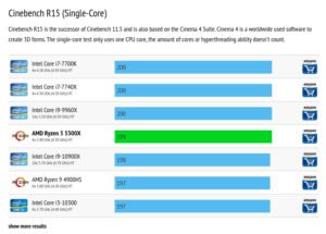 El procesador de cuatro núcleos Core i7-7700K “Kaby Lake” de Intel puede quedar significativamente por detrás de su sucesor de novena generación y los chips Ryzen 7 de hoy, pero sigue siendo una pieza formidable de silicio para construcciones estrictamente de juegos. ¿Puede ser superado por un AMD Ryzen 3 3300X de $ 120? Una supuesta puntuación de Cinebench R15 filtrada sugiere que algo muy fascinante se está gestando en AMD. El puntaje apunta a que el i7-7700K tiene un puntaje de un solo hilo solo 0.5 por ciento más alto que el 3300X, lo que significa que el puntaje multiproceso del chip AMD de 4 núcleos / 8 hilos podría terminar a una distancia sorprendente del i7- 7700K.