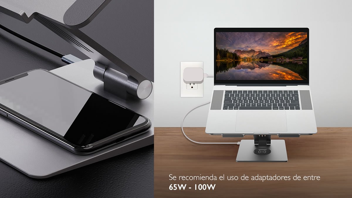 Tipo de producto: Estación de acoplamiento 9 en 1 con soporte para computadora portátil y plataforma de carga inalámbrica