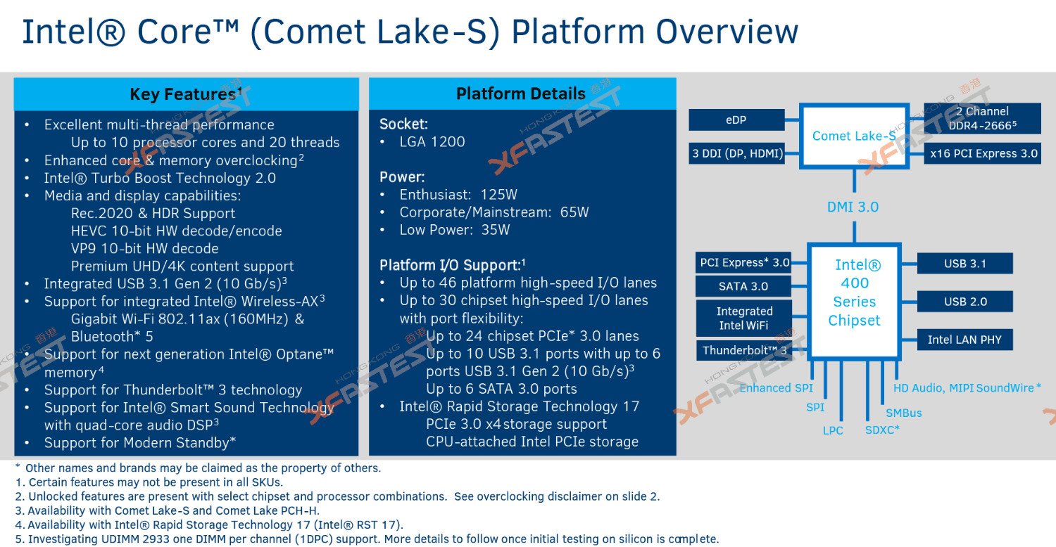 Las nuevas CPUs Comet Lake-S aún se construirán en el proceso ahora extremadamente refinado de 14 nm, y supuestamente mantendrán los mismos 16 carriles PCIe 3.0 que las ofertas actuales de Coffee Lake Refresh. Se espera que las nuevas ofertas de CPU de Intel se implementen en el primer trimestre de 2020.