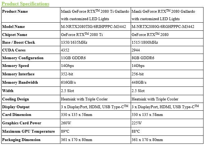 Manli Technology Group Limited, uno de los principales fabricantes de tarjetas gráficas y otros componentes, anunció hoy la edición definitiva superior de la solución gráfica de la serie Gallardo: Manli GeForce RTXTM 2080 Ti y RTXTM 2080 Gallardo, además del último software valioso: Turbo Engine y LED Lighting Controlar. Dos relámpagos a través de la cubierta de enfriamiento, y destellos con luces LED impresionantes. Mientras tanto, está equipado con 5 tubos de calor de cobre compuesto y ventiladores triples de 90 mm para garantizar un funcionamiento silencioso y fresco.